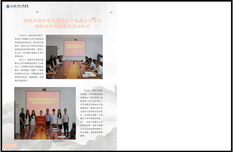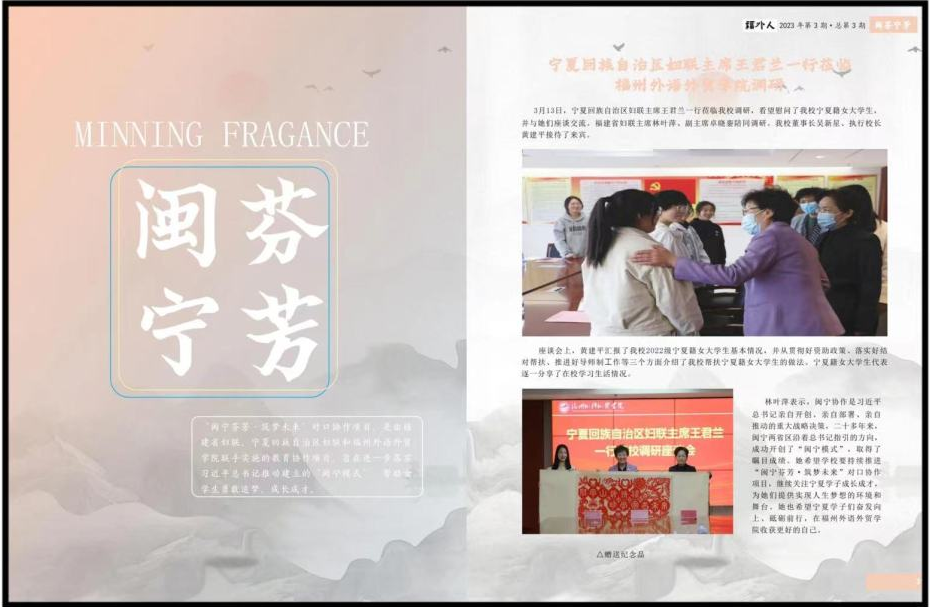 “闽宁芬芳·筑梦未来”对口协作项目,是由福建省妇联、宁夏回族自治区妇联和福州外语外贸学院联手实施的教育协作项目,旨在进一步落实习近平总书记推动建立的“闽宁模式”,帮助女学生勇敢追梦、成长成才。