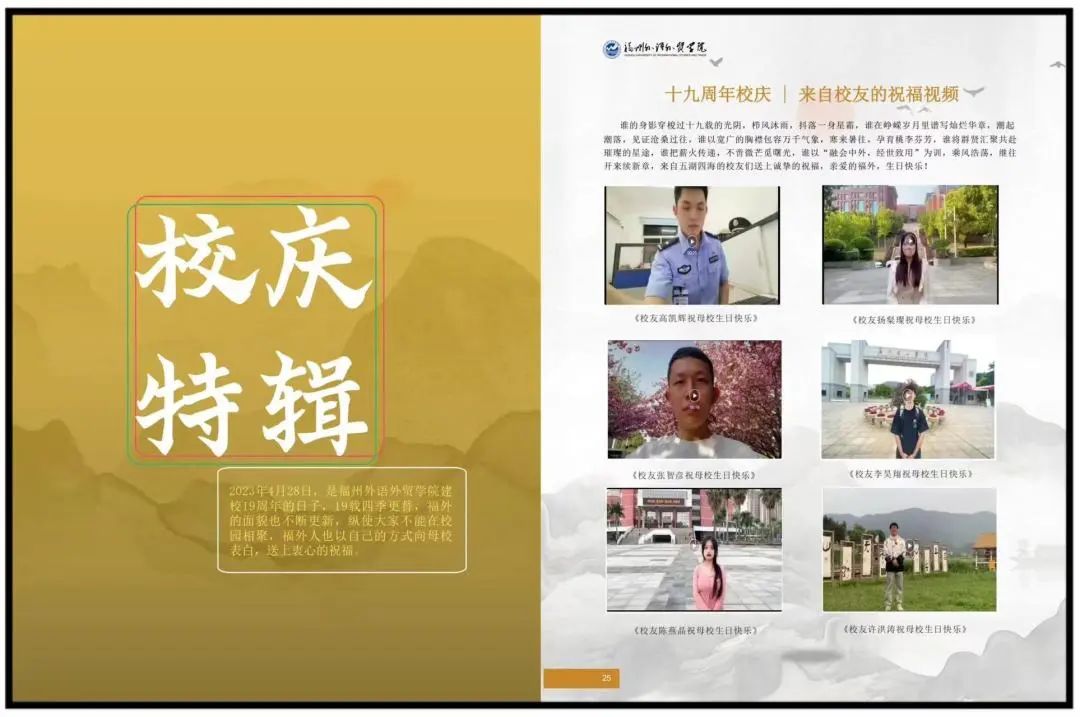2023年4月28日,是福州外语外贸学院建校19周年的日子,19载四季更替,福外的面貌也不断更新,纵使大家不能在校园相聚,福外人也以自己的方式向母校表白,送上衷心的祝福。