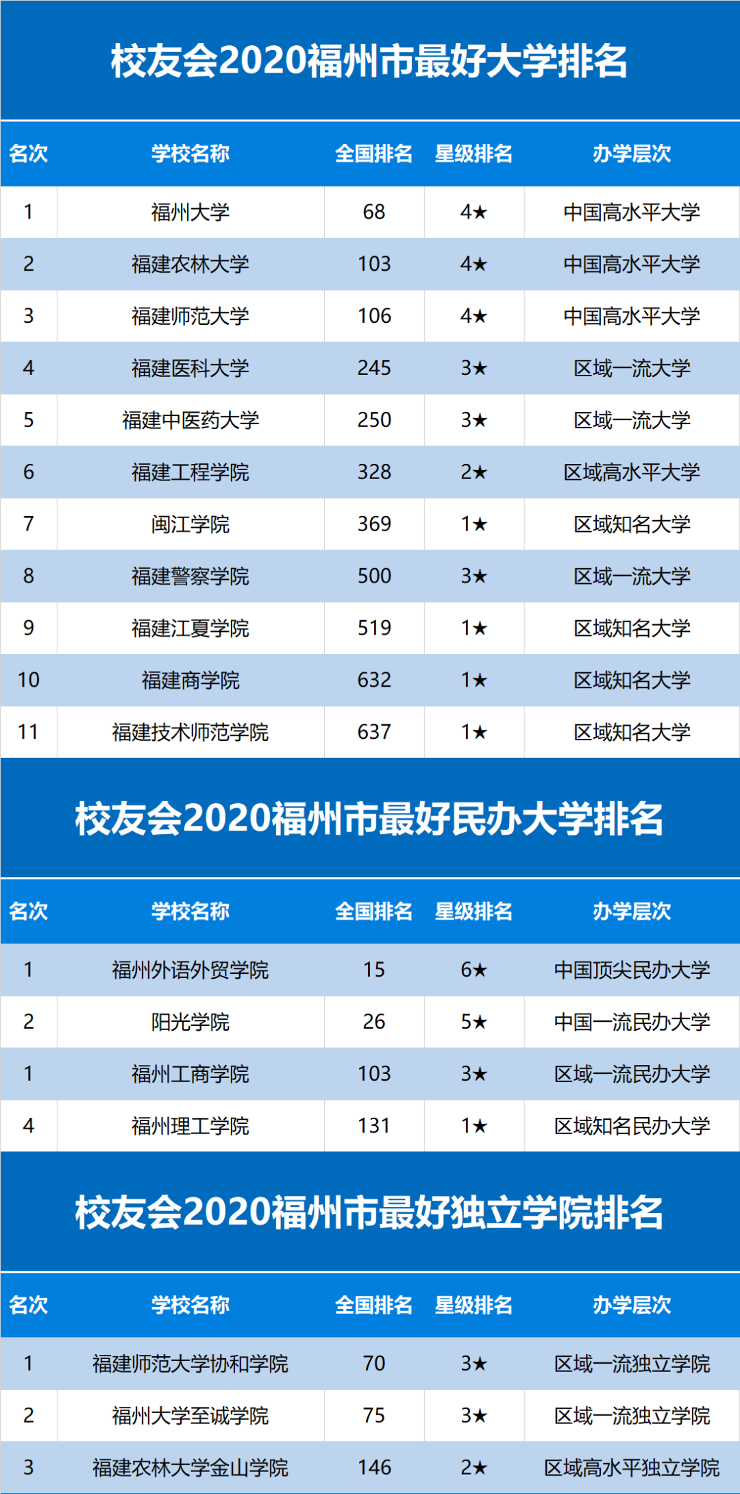 2020年3月,由艾瑞深校友会网(Cuaa.Net)编撰完成的《2020中国大学评价研究报告—高考志愿填报指南》一书由科学出版社面向全国公开出版发行,报告公布最新艾瑞深校友会2020中国大学分区排名、2020中国各线城市最好大学排名和2020福州市最好大学排名等榜单。