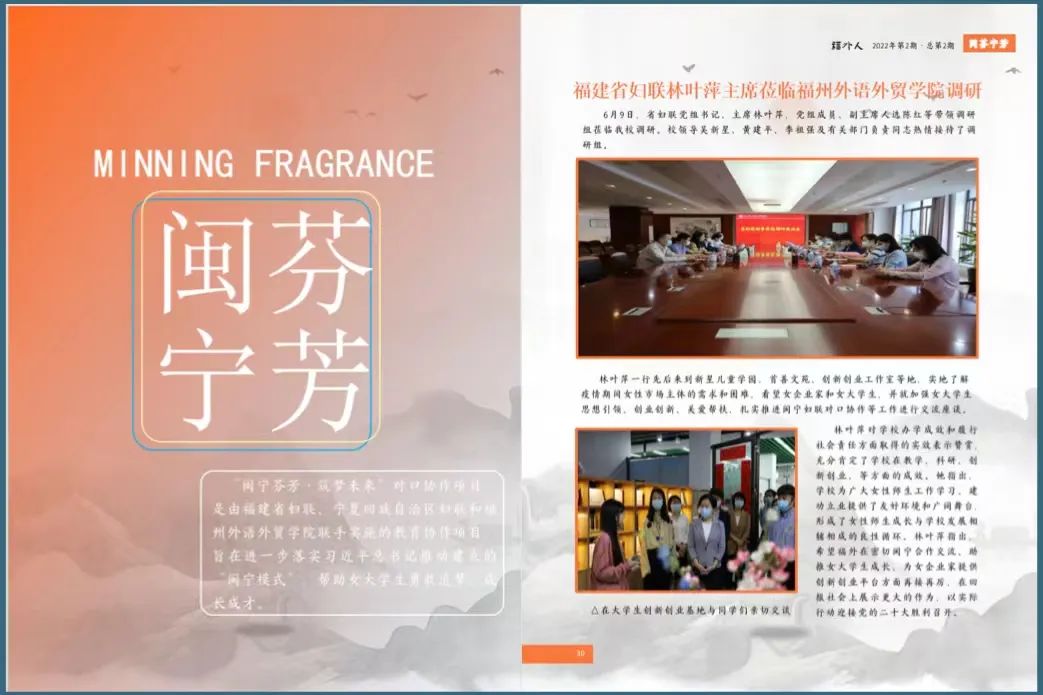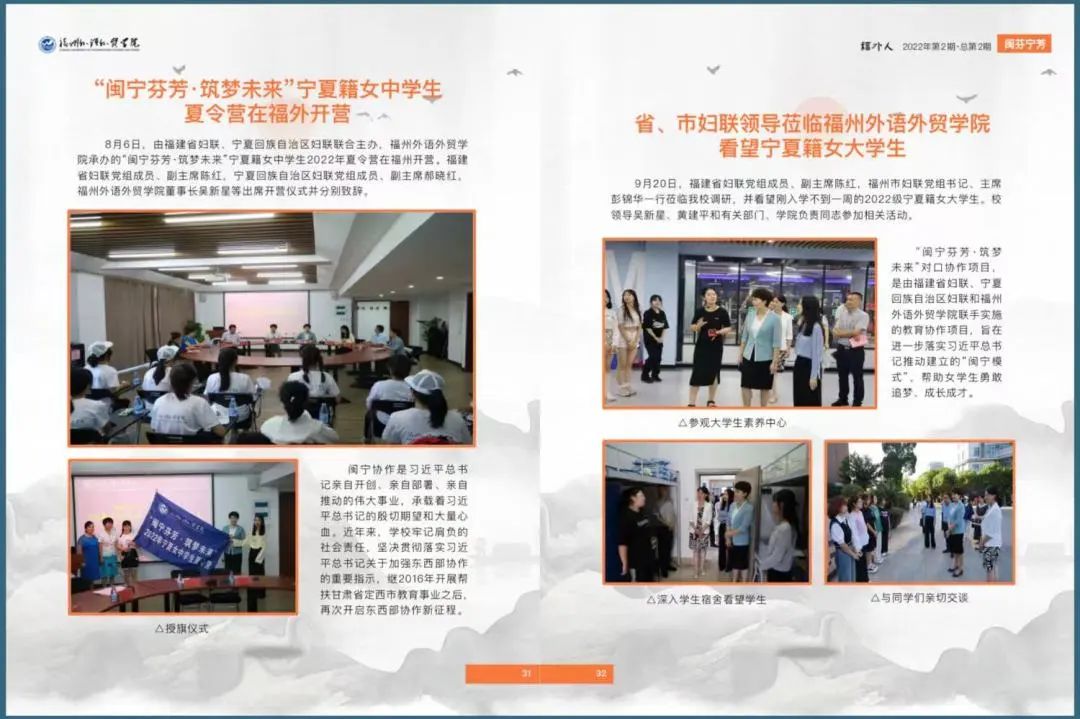 “闽宁芬芳·筑梦未来”对口协作项目,是由福建省妇联、宁夏回族自治区妇联和福州外语外贸学院联手实施的教育协作项目,旨在进一步落实习近平总书记推动建立的“闽宁模式”,帮助女大学生勇敢追梦、成长成才。