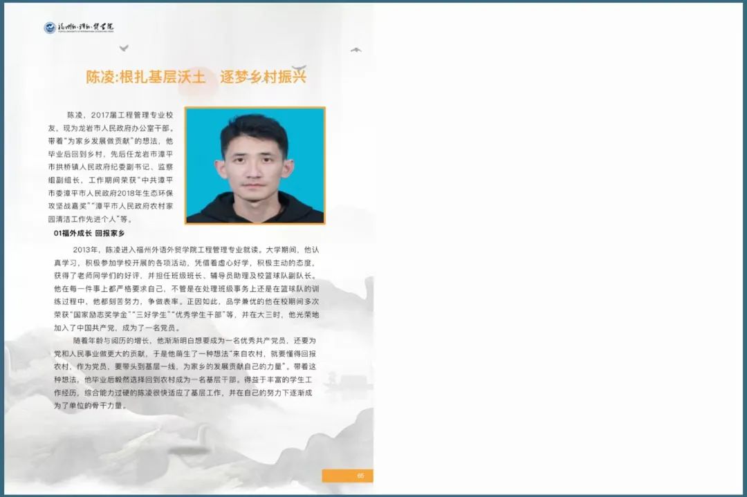 近年来,福外培育出一批又一批优秀的校友,他们在各自的岗位上无私奉献、贡献才智,用自己的业绩和成就传播了福外精神。让我们一同倾听他们的声音,走近他们的精神风貌和事业历程。