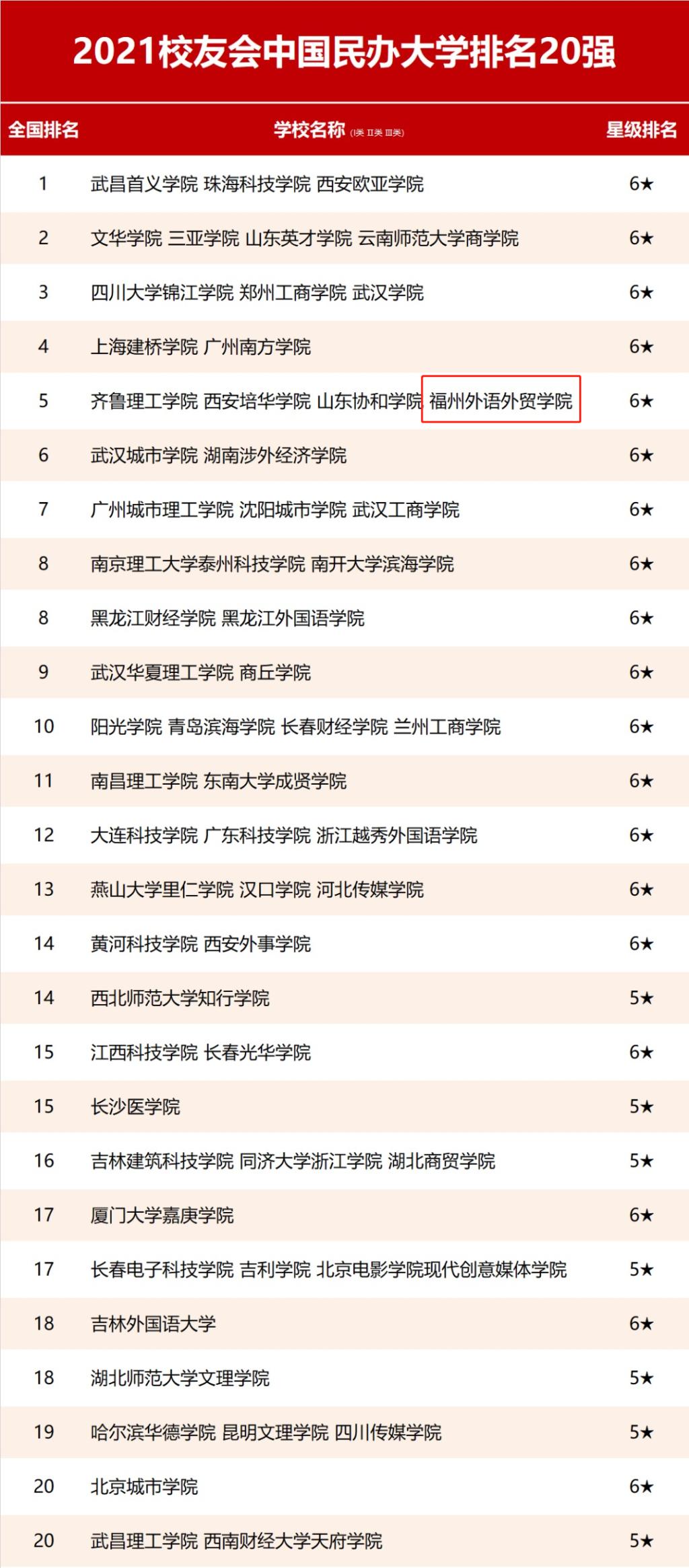 3月25日,全国第三方大学评价机构艾瑞深校友会网正式公布《2021校友会中国大学排名—高考志愿填报指南》,最新发布校友会2021中国大学排名、2021中国民办大学排名(含独立学院)和2021中国高职院校排名等榜单。数据显示:我校以99.56分位列“2021中国民办大学排名20强”第5位,蝉联福建第一,稳居中国顶尖民办大学行列。