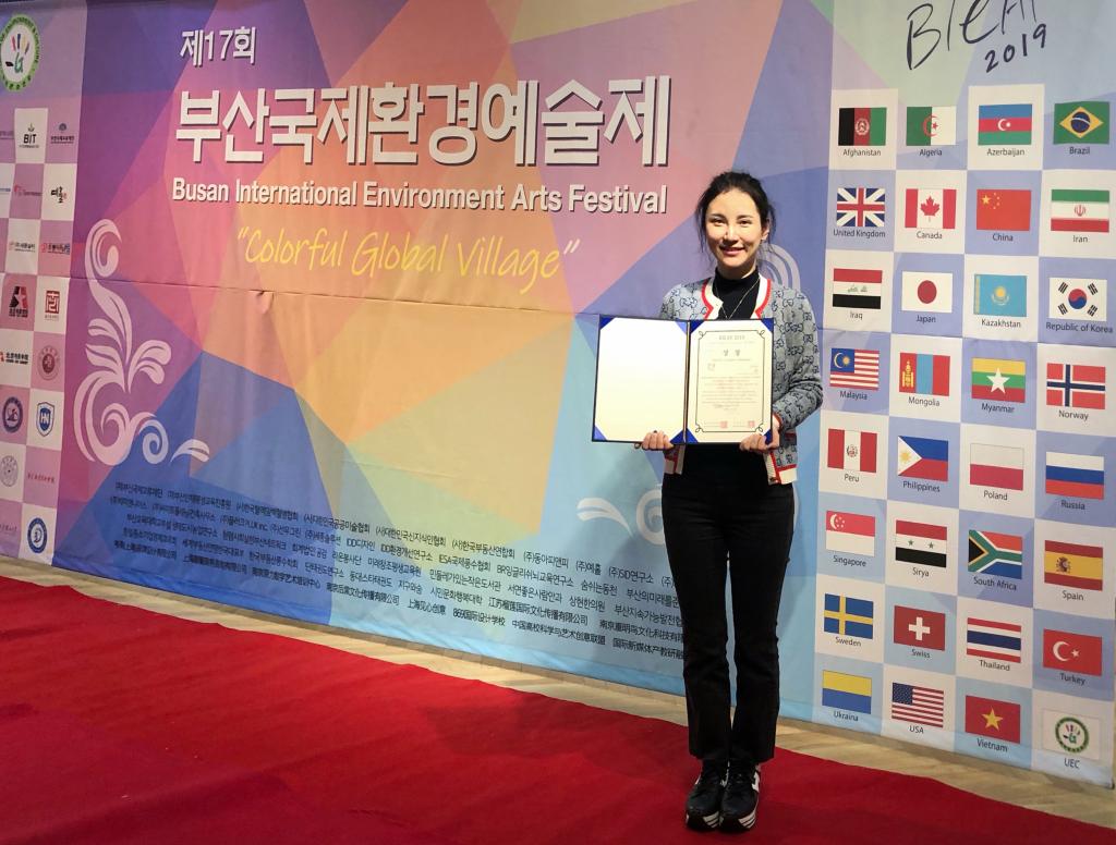 11月22日,第17届韩国釜山国际环境艺术节(BIEAF)在釜山市政府展会厅隆重举行颁奖仪式。艺术与设计学院视觉传达设计系教师栀梓的海报作品《美美与共》获得艺术节银奖(亚洲Graphics Olympiad设计大赛视觉设计类)。