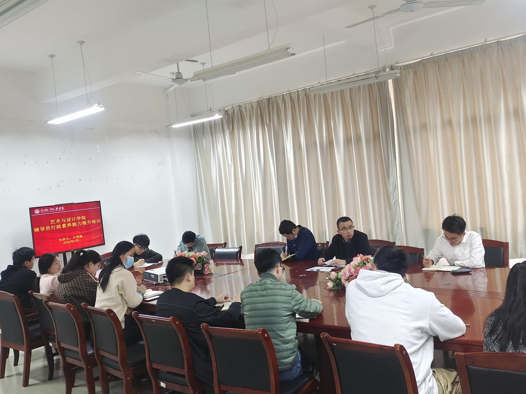 为进一步推进党史学习教育走深走实,不断提高辅导员的专业技能和职业素养,艺术与设计学院启动辅导员职业能力提升系列培训项目。4月13日,系列培训项目第一场次《辅导员行政素养能力提升培训》在实验2号楼204会议举行,学院全体政工干部参加培训。培训由学院党委书记、副院长宁伟强主讲。