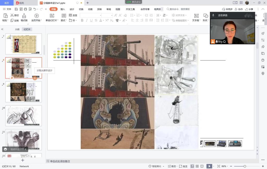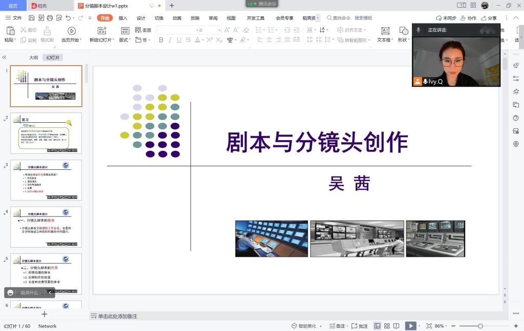 2022年3月23日,广播电视编导系教师吴茜在腾讯会议平台,面向2021级广播电视编导专业学生开展了题为《剧本与分镜头创作》的在线艺术普及讲座。