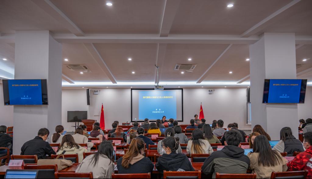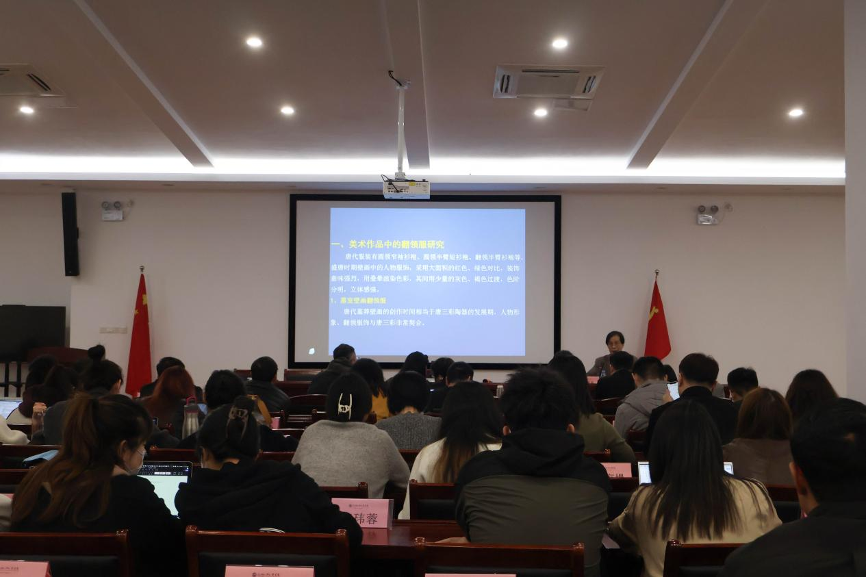 12月12日,学院于西区学术交流中心举行“海·蓝设”艺术大讲坛--“唐代中外翻领人物画与三彩人物俑的研究”主题讲座,讲座由景德镇陶瓷大学二级教授、博士生导师詹嘉主讲,全体专任教师参加。