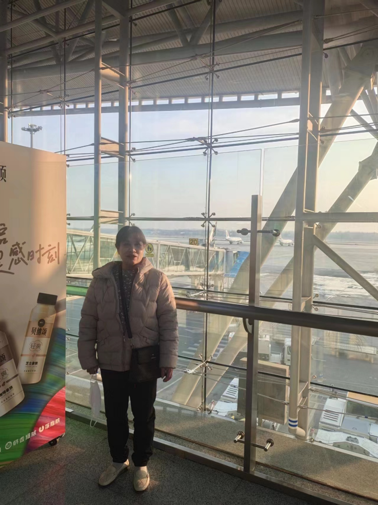 放寒假过后,我带着长久留在县城中的外婆外公来了一次旅游,我们一起坐飞机来到山东。这是在机场时的留影,她很满意,然后我看着她像个小孩子一样望着飞机起飞、降落,眼里闪着光。