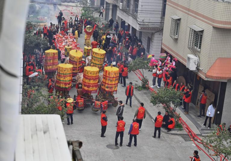 家乡的年味,对我来说是最熟悉不过的了,尽管每年都有一次这样的游神,但每次都像初识一样兴奋,恨不得将脑袋伸出窗外看个过瘾。震耳欲聋的鞭炮和人们敲击的乐器声交融在一起。我想,天上的神仙应该能听到这来自人间烟火的声音,并带来祝福和祥瑞吧!