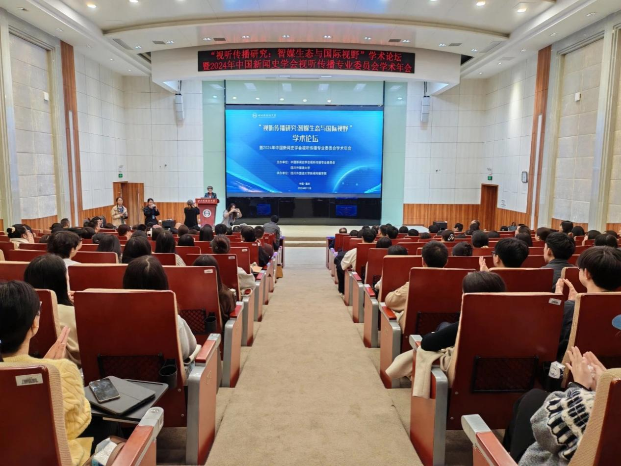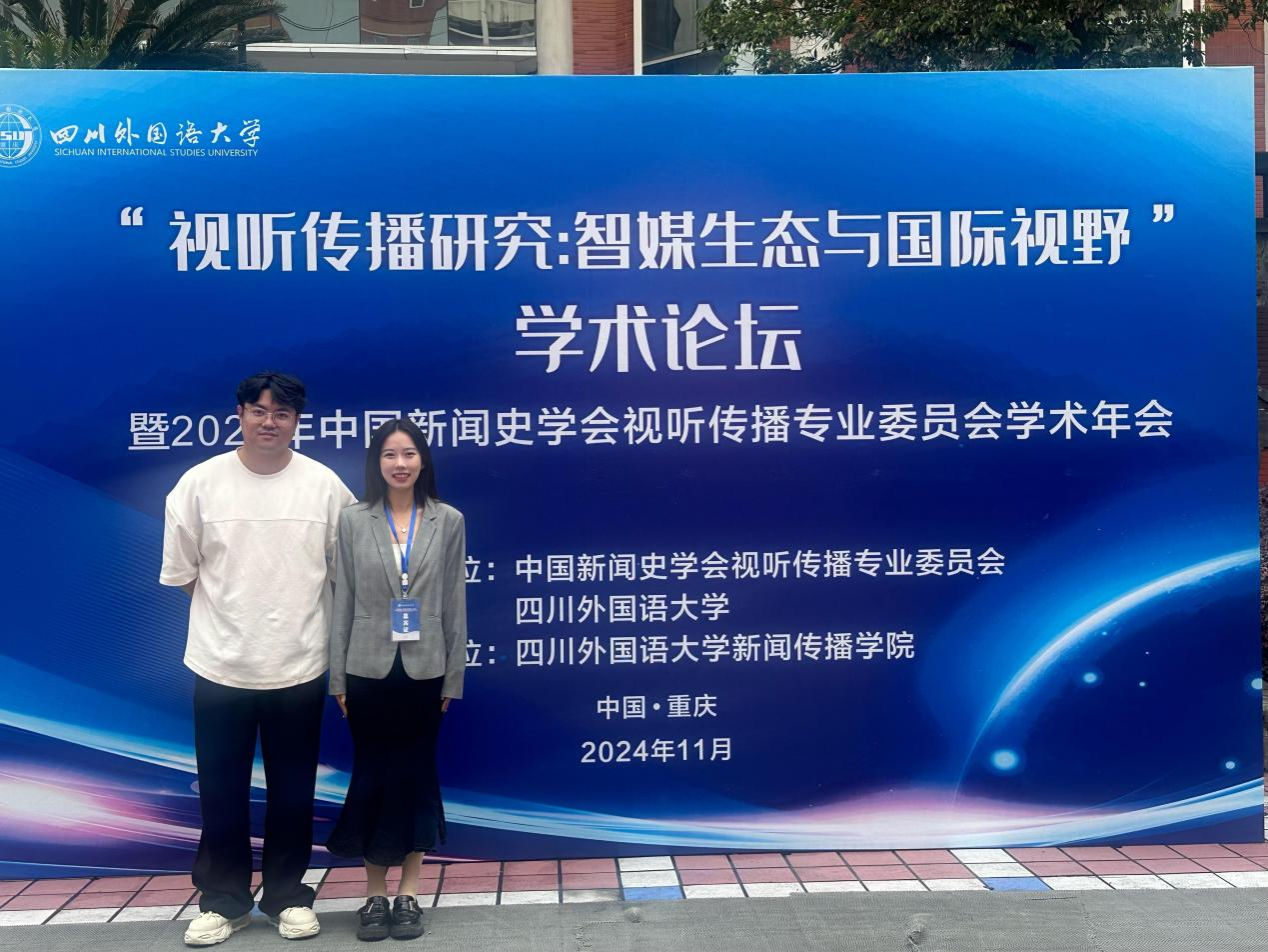 2024年11月15日至17日,“视听传播研究:智媒生态与国际视野〞学木论坛暨2024年中国新闻史学会视听传播专业委员会学木年会”在四川外国语大学成功举行。艺术与设计学院广播电视编导专业专任教师李典泽、网络与新媒体专业专任教师陈琳岚,受邀参加本次研讨会,并由广播电视编导专业专任教师李典泽进行论文发表。