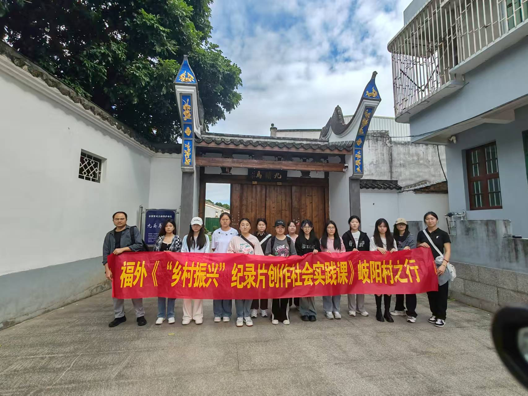 近日,广编系师生赴福州岐阳村开展《“乡村振兴”纪录片创作社会实践课》课程实践教学实践。此次活动由艺术与设计学院广编系教师顾志庆牵头组织,“乡村振兴”岐阳村拍摄团队以及广播电视编导专业部分学生参加了此次活动。师生们怀揣着对纪录片创作的热忱以及对乡村文化传承与传播的使命感,深入岐阳村,开启了这场意义非凡的实践之旅。