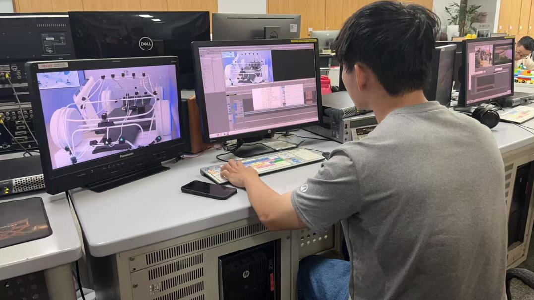 与此同时,在资讯融媒体中心,同学们全方位体验融媒体时代的新闻生产。这个“全能型记者训练营”让每个人都投身采、写、编、拍、剪等各个环节。采访中,同学们深入城市街头、展会现场和各类活动现场获取第一手素材,每一次外出都是新的挑战,从前期准备到临场应变,他们在实践中快速成长。