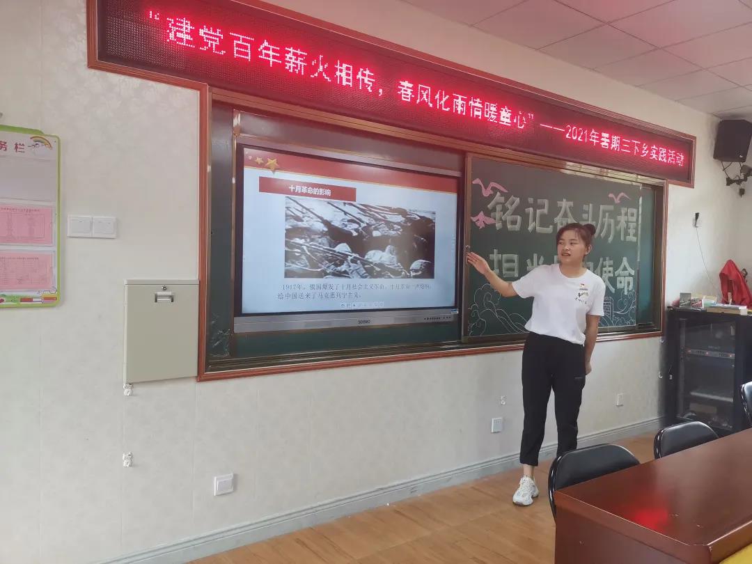 “这次的三下乡活动虽然只有短短的几天时间,但是对我来说却是意义非凡。值此建党一百周年之际,能够借此次机会到家乡开展关爱农村留守儿童志愿服务,反哺家乡,为孩子们带去温暖与关爱,我感到非常荣幸与自豪。作为一名学生党员,今后定当时刻以共产党员的标准严格要求自己,充分发挥党员的先锋模范作用,砥砺前行、奉献青春、把最真挚的爱党、爱国情怀融入实际行动中去。”