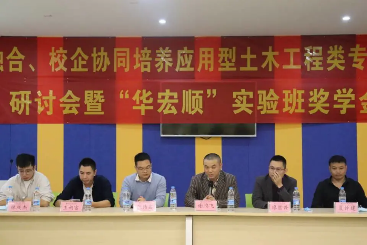 2021年10月26日,产教融合、校企协同培养应用型土木工程类专业人才的改革与实践研讨会暨“华宏顺”实验班奖学金颁奖仪式在教5403VR教室举行。福建省建设工程质量安全监督总站谢鸿飞教授、福建华航建筑工程检测有限公司经理夏仲建、福建宏实建设工程质量检测有限公司总经理廖翁兴、福建省建筑科学研究院长乐分公司总经理张伟鑫、我院院长毕贤顺教授、副院长、分党委书记吴晓凯出席本次仪式,各系主任、辅导员代表以及所有检测班学生参加仪式。本次仪式由院办公室主任汪翠茹主持。