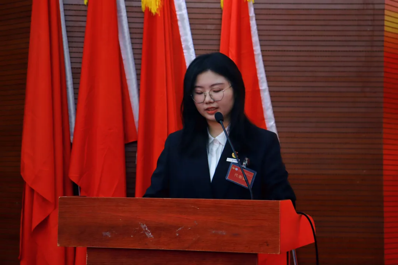 团委书记王欣代表学院向大会顺利进行而辛勤工作的各位代表及工作人员表示衷心的感谢。她做了一篇题为《如果时间有颜色》的演讲。文中提到,此次双代会的召开,必将在智能建造学院历史上留下浓墨重彩的一笔。她坚信在新一届团委学生会的带领下,定能不负重望,不辱使命,不断开创智能建造学院团学工作的新局面。她号召广大青年:向老革命家学习,抛头颅洒热血,危难关头,挺身而出,做一个富有激情、勇于突破、坚韧不拔的干部,成就砥砺奋进,坚守初心的”红色”年。向军人学习,凡事以学院集体利益为先,也请相信领导者的正直与判断,做一个潜心为民、作风优良、有章可循的干部,造就敢作敢为,追求卓越的”金色”年。向宣传人学习,担负传播正能量的使命。展示学校的的优良作风,扩大学院的对外影响力,做一个海纳百川、善于内省、与时俱进的干部,铸就行稳致远,富有生机的”绿色”年。