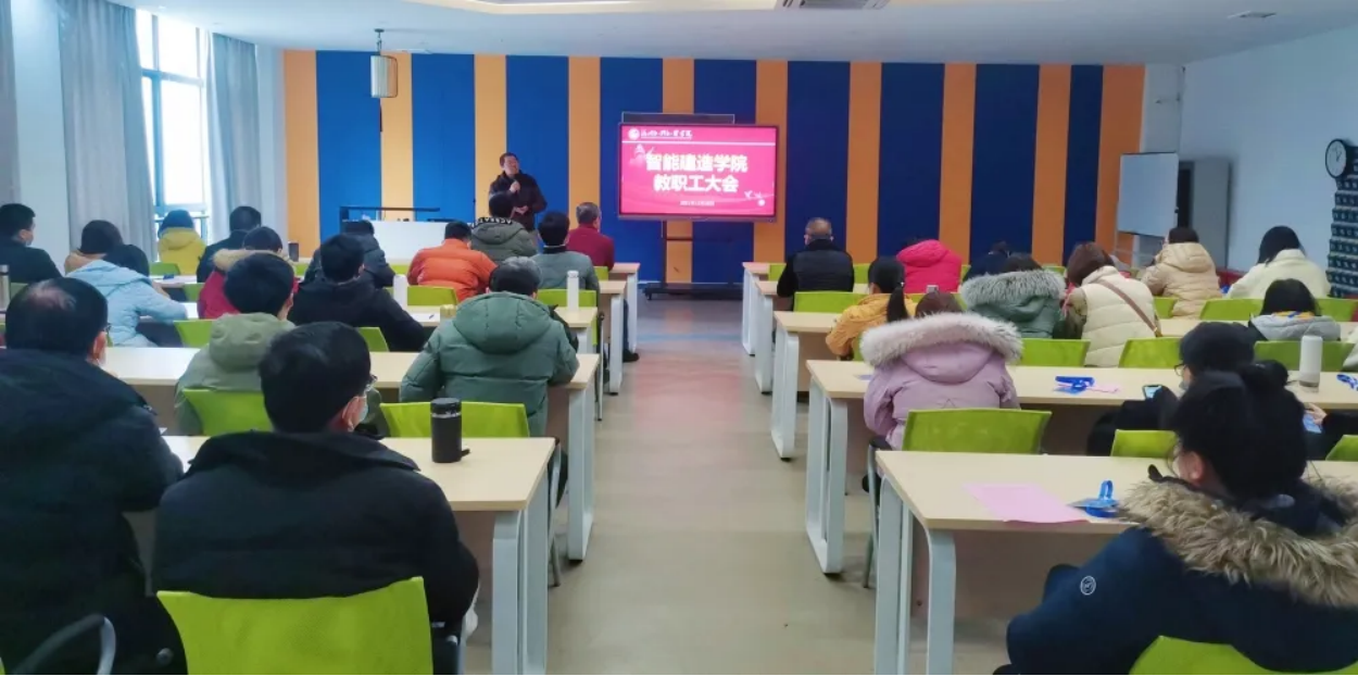 12月28日下午,智能建造学院2021—2022学年第一学期期末工作全体会议在教5403VR实验室顺利召开。我院院长毕贤顺、副院长陈忠源、副院长、分党委书记吴晓凯以及全体教职工参加了本次会议,会议由办公室主任汪翠茹主持。