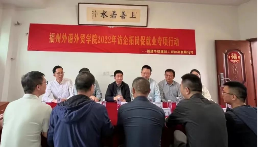 5月9日,福州外语外贸学院副校长、纪委书记季祖强带领智能建造学院、教学发展中心、学生发展中心相关负责同志赴我院校企合作单位福建华航建筑工程检测有限公司实地走访调研,并就人才培养、实习就业、校企合作等方面与华航建筑公司总经理夏仲建等展开深入交流。