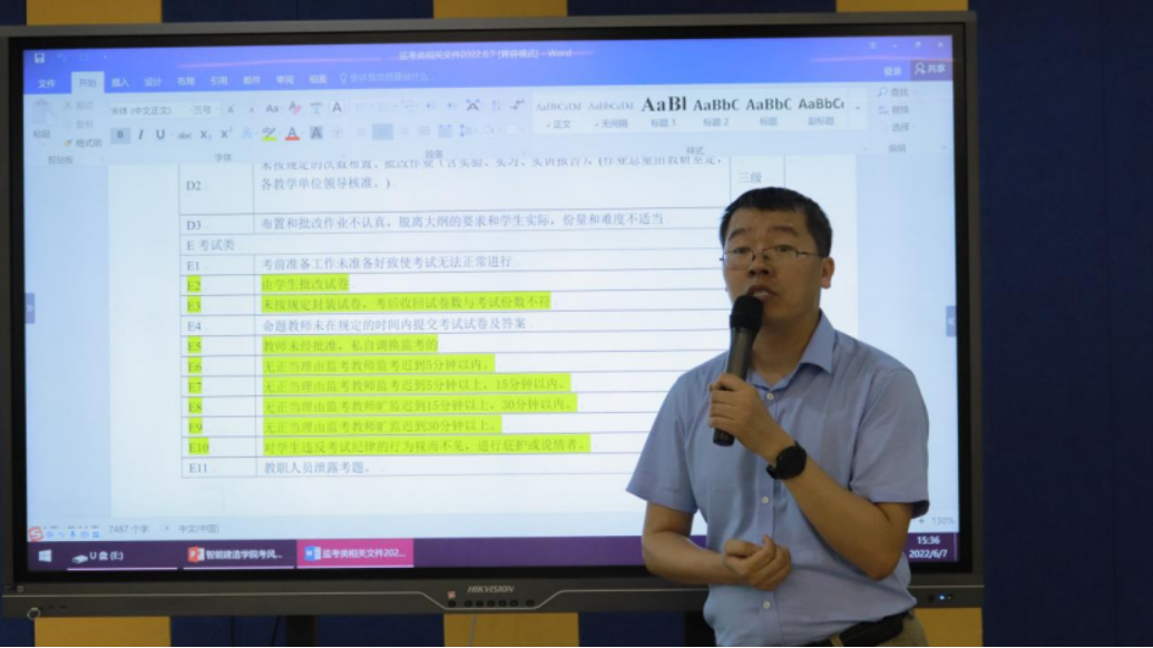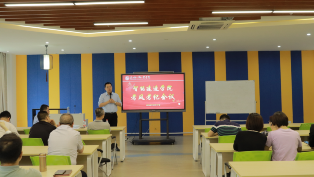 6月7日下午15:30,智能建造学院在教5403VR教室召开学院期末考风考纪会议。我院院长毕贤顺,副院长陈忠源,副院长、分党委书记吴晓凯及全体教职工参与此次会议,此次会议由办公室主任汪翠茹主持。