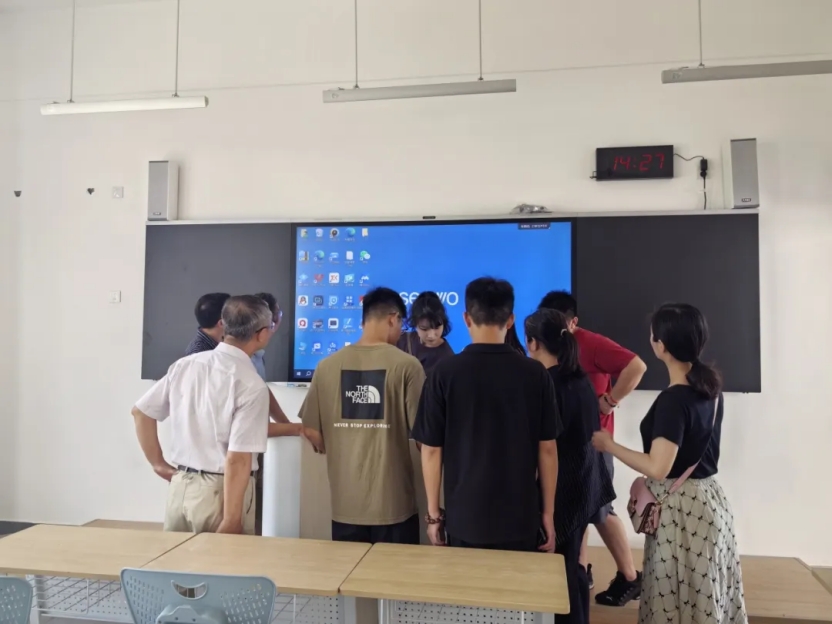 在总务中心相关老师的陪同下,毕贤顺院长一行先后对新校区的教学楼群、宿舍区以及办公区等进行了全面考察。他们走访了即将投入使用的教室,深入了解新校区的教学环境,熟悉掌握多媒体设备的操作流程。随后,他们来到办公区,与教师们共同探讨了办公室布局、办公设施配置,调研并规划办公室所需物资,为新学期的教学工作做好充分准备。