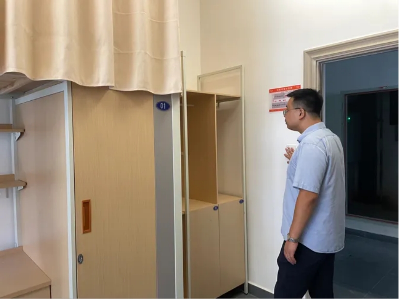 在检查过程中,吴晓凯书记着重聚焦于新生宿舍的居住环境、安全设施状况以及卫生清洁等多个方面,并对存在的不足之处提出了整改意见,确保在所有新生有一个温馨、健康的宿舍生活环境,为新生们的学习与生活奠定坚实的基础。
