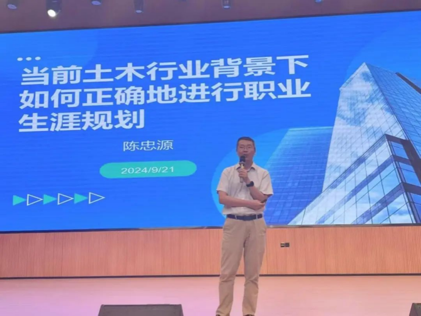 为拓宽新生学习视野,帮助新生及早了解专业学科前沿和发展方向。9月21日,智能建造学院副院长陈忠源副教授面向全体2024级本科新生,开展了一场题为“当前土木行业背景下如何正确地进行职业生涯规划”的新生入学教育。