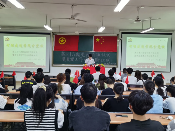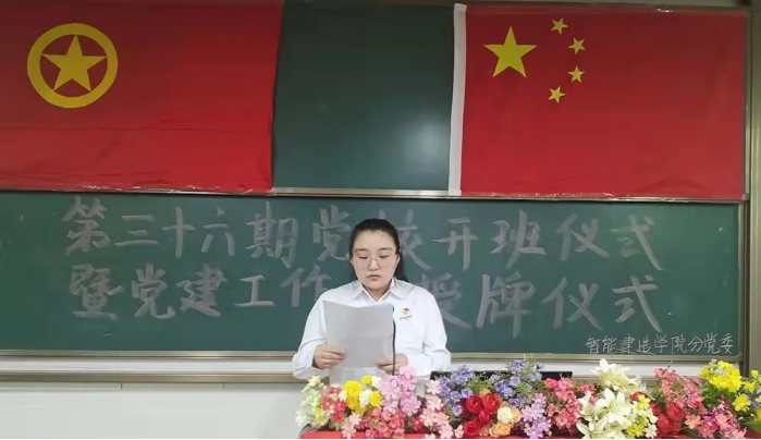 智能建造学院分党委于近日在实3102举办第三十六期分党校开班仪式暨学生党建工作站授牌仪式。出席本次仪式有智能建造学院分党委书记、副院长、分党校校长吴晓凯,分党校教务长、办公室副主任王欣,学生第一党支部书记陈志楠,学生第二党支部书记吴煜洺,辅导员张李通、李严及培训班的全体同学。此次会议由辅导员陈燎原主持。