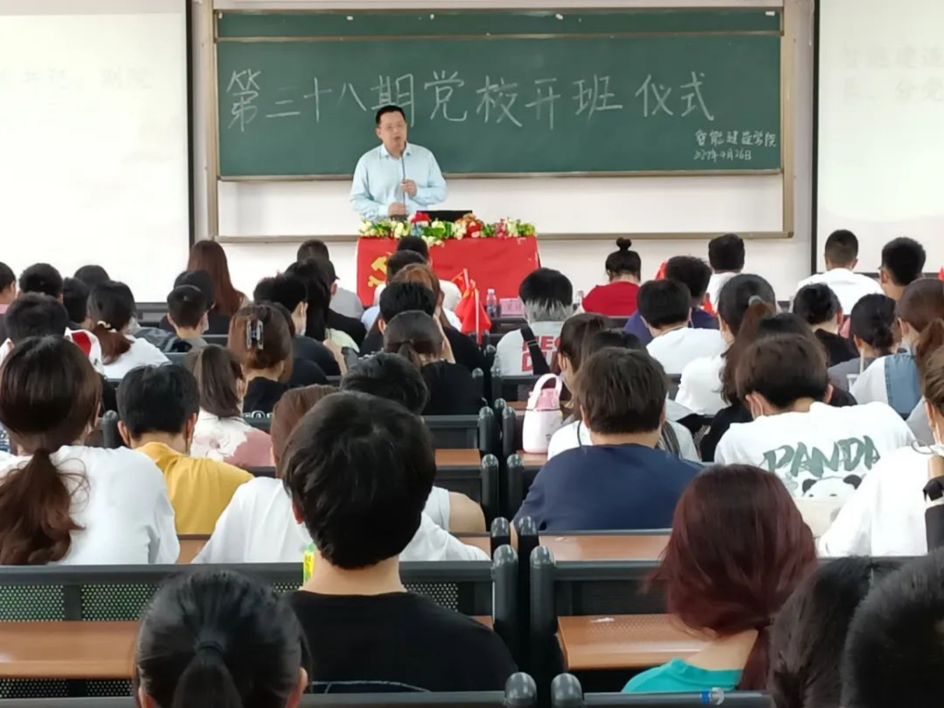 为进一步加强对入党积极分子的培养、教育和考察,提高入党积极分子的思想政治素养,智能建造学院分党委于2022年4月26日下午13点在实3301举行第三十八期分党校开班仪式,出席本次仪式的有智能建造学院分党委书记、副院长、分党校校长吴晓凯,智能建造学院分党委组织委员、分党校教务长王欣,学生第二党支部书记吴煜洺以及辅导员陈燎原、张李通、李严。本次大会由学生第一党支部书记陈志楠主持。