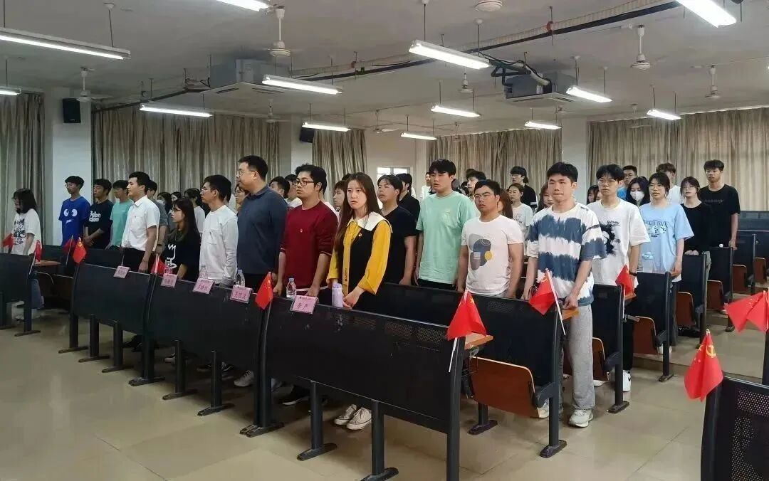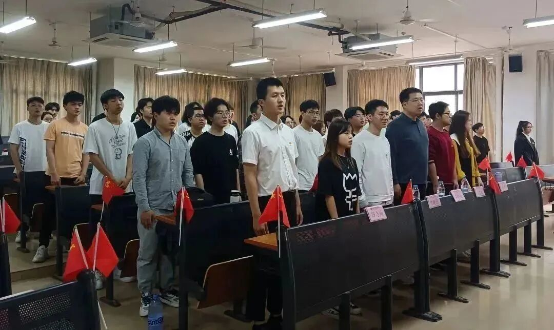 开班仪式在嘹亮的国歌中开始,与会师生全体肃立,共同奏唱国歌。