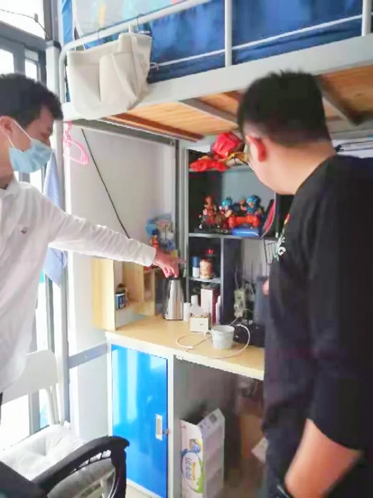 在对学生的宿舍检查时,辅导员们重点检查寝室内是否有存放高功率电器等物品,是否有乱接电线,同时也对是否有饲养宠物行为、宿舍卫生是否干净、是否有消防安全隐患等情况也进行检查,从源头上消除学生宿舍的一切安全隐患。老师们在检查过程中,不断提醒新生们要谨遵学校住宿的规章制度,谨慎用电,注意省电,用完电脑等后要及时拔掉插头,减少用电风险。
