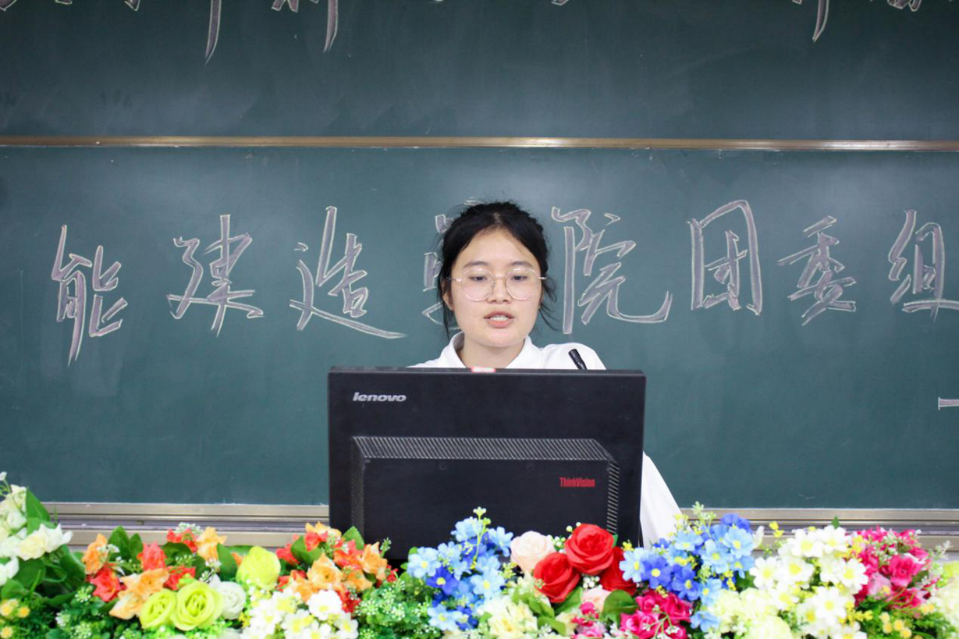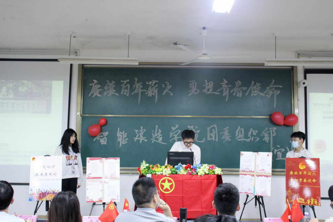 各班级团支部汇报人上台汇报演讲