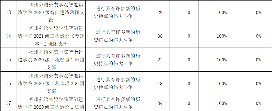 2021年11月15日至2021年11月21日,智能建造学院共有35个团支部,有1186人次团员青年参加了“青年大学习”第十二季第六期的网上主题团课学习。接下来,让我们一起看看本期的完成情况吧!