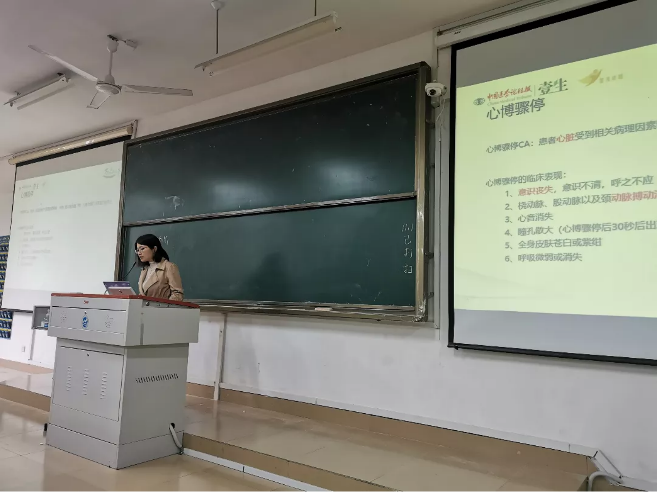 柳舟博士从心肺复苏的定义、心博骤停的判断、心肺复苏流程、心肺复苏的疗效评价和高级生命支持治疗等方面为同学们介绍了急救知识,使学生初步掌握了心肺复苏简易流程。通过本次讲座,不仅普及了实用的安全知识,还提升了同学们的安全意识。