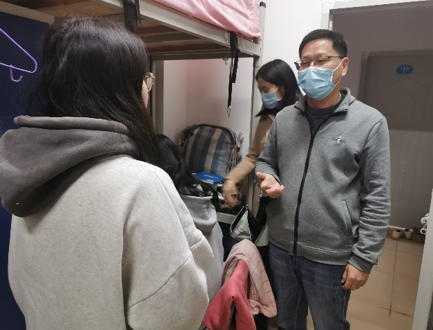 2021年11月19日下午,2021级工程管理1、2班班导师胡汉敏走访了部分学生宿舍,并与同学们亲切交谈。