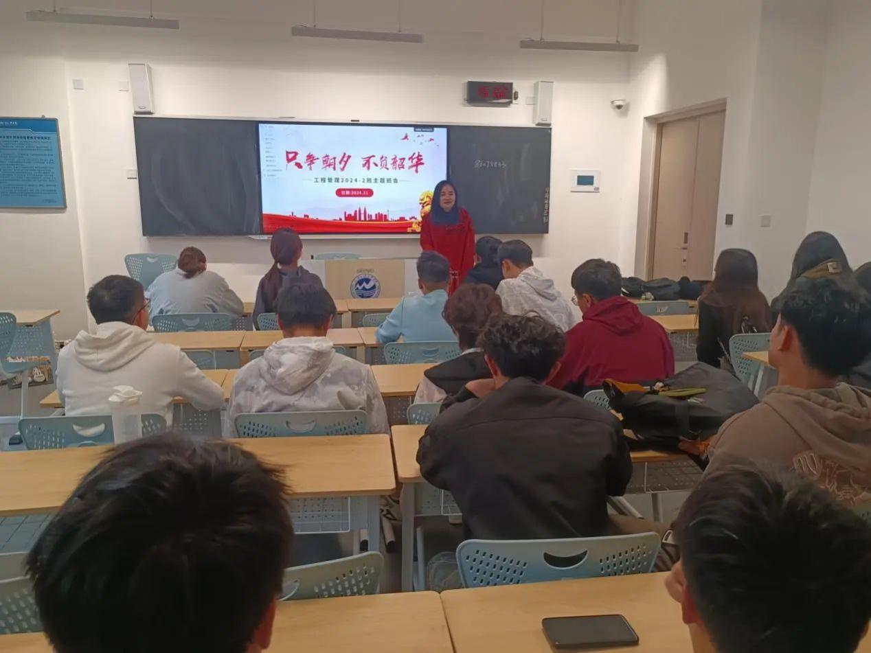 2024年11月26日下午,2024级工程管理2班班导师——土木工程系专任教师陈颖在滨海校区教1-107室开展“只争朝夕,不负韶华”主题班会,2024级工程管理2班全体同学参加。