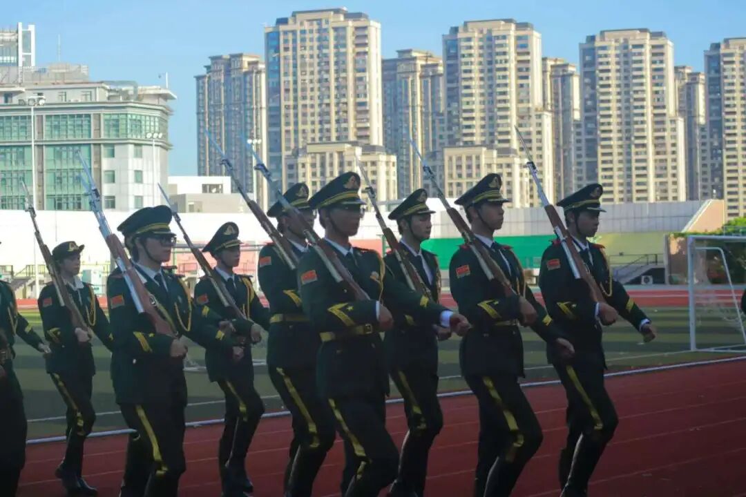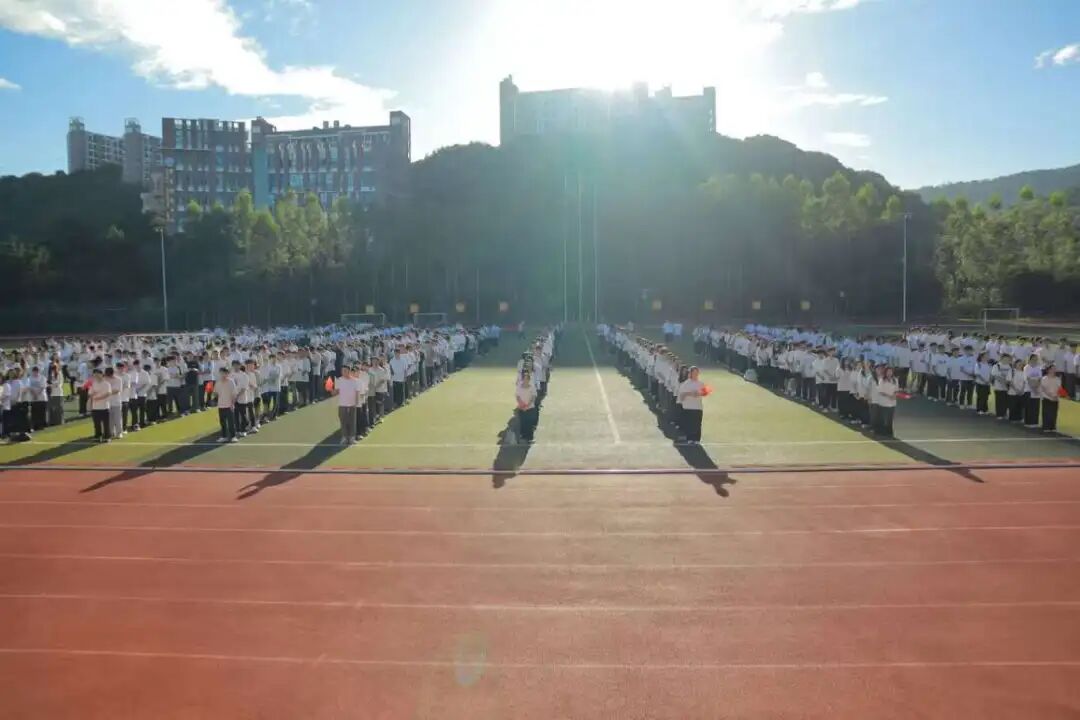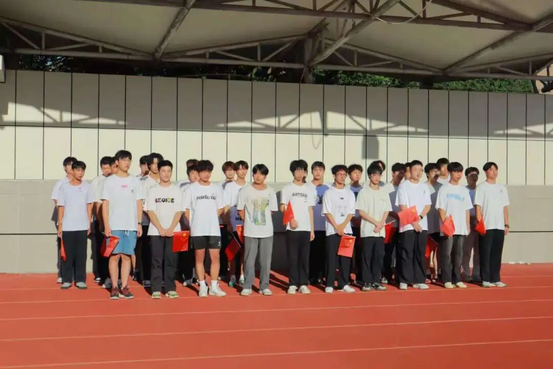 伴着朝阳,国旗护卫队迈着铿锵步伐护送五星红旗入场。在庄严的《义勇军进行曲》中,鲜艳的国旗冉冉升起。全体师生肃立凝视,目光中饱含对祖国的无限热爱。这一刻,晨光与国旗交相辉映,肃穆与深情融汇交织,澎湃的爱国热情与深厚的历史情怀在每个人心中激荡。