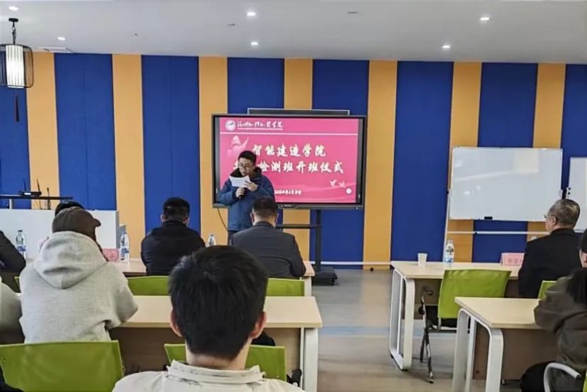 为进一步深化产教融合,推进校企合作,建设“共育共建”人才培养模式,1月5日下午,智能建造学院在教5403VR实训中心举行华航检测班开班仪式。福建华航建筑工程检测有限公司总经理夏仲建、总工龚匡晖、副总工游榕华、技术负责人王海龙、实验室负责人郑顺、智能建造学院院长毕贤顺、副院长陈忠源、副院长、分党委书记吴晓凯、各系主任及辅导员代表共同出席本次仪式。华航检测班的全体同学参加了本次开班仪式。