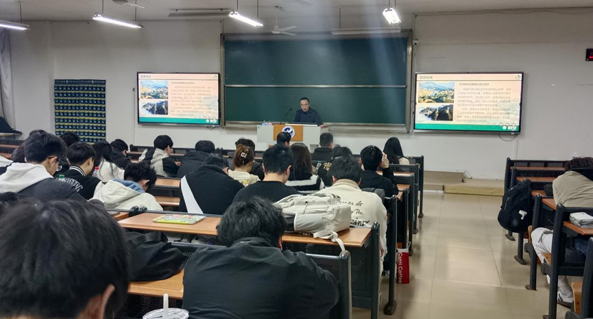 在互动交流环节,学生们积极提问,重点关注电网施工中无人机械的应用现状以及智能建造专业的就业前景。黄教授耐心解答,详细介绍了无人运输索道、无人机等设备的应用场景,并勉励学生们学好专业课程,特别是智能机械和绿色建筑相关技术,以提升未来的就业竞争力。
