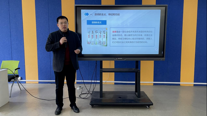 师德建设一直是教师队伍建设的核心工作。为不断提高教师师德素养,树立优良师风,1月23日上午,智能建造学院副院长、分党委书记吴晓凯在教5403VR实训中心面向学院全体教职工开展《端正职业认知,涵养师德师风》培训讲座。