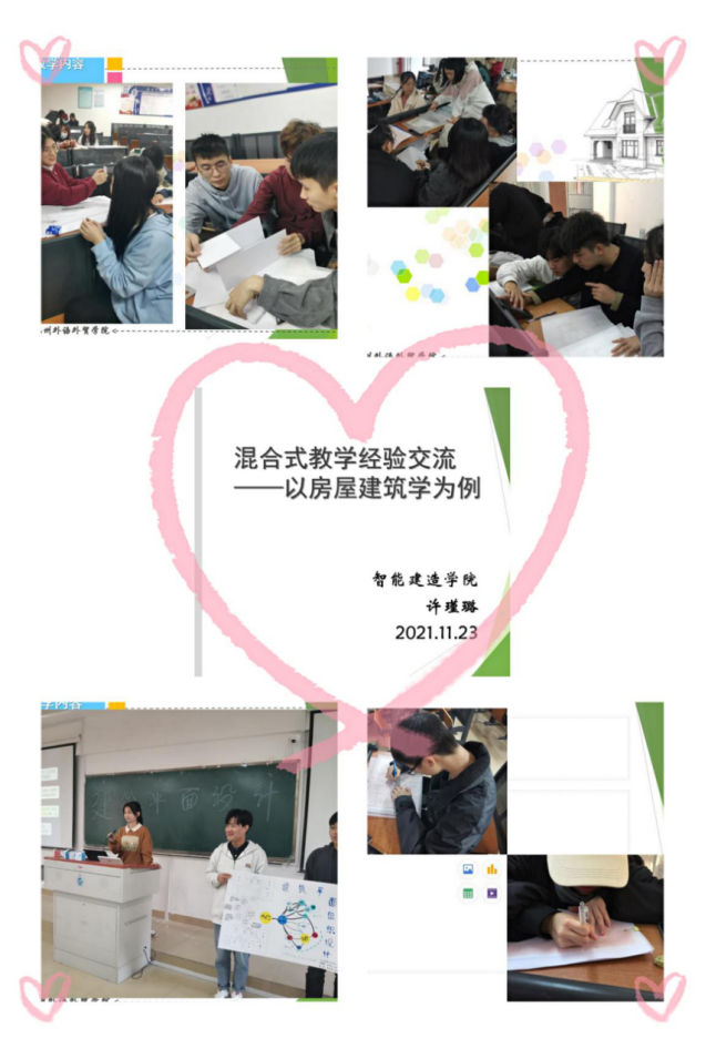 2021年11月23日14:00至15:30,智能建造学院工程管理系的许瑾璐老师在教5408为我院全体教师开展《混合式教学经验交流——以房屋建筑学为例》专题讲座。