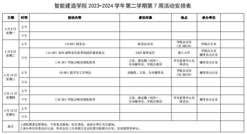 智能建造学院2023-2024学年第二学期第7周活动安排表