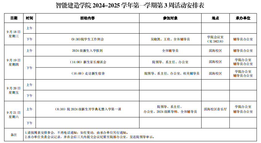 智能建造学院2024-2025学年第一学期第3周活动安排表